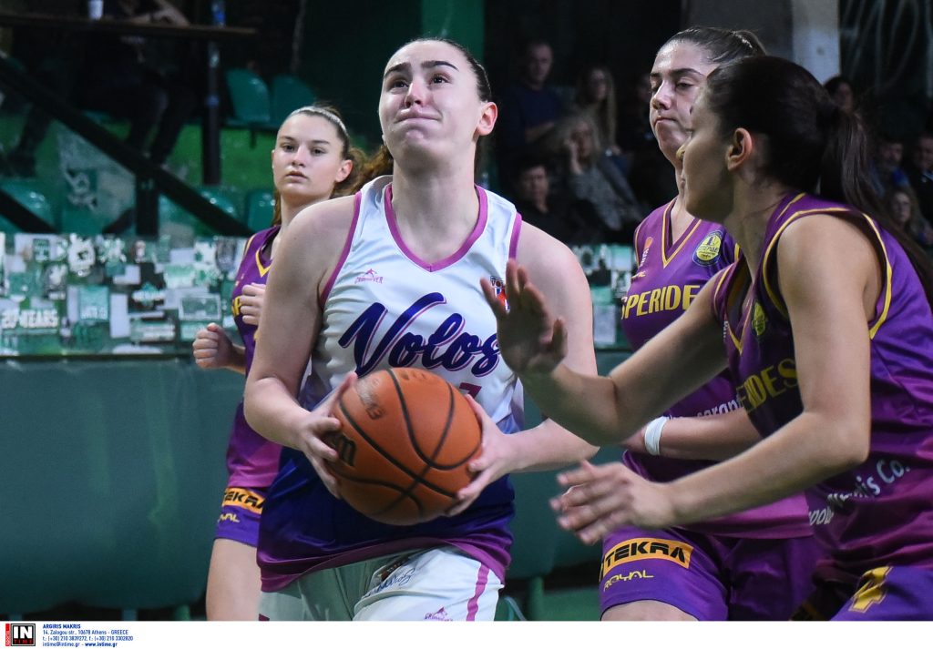 O αγώνας ήταν αμφίρροπος στην μεγαλύτερη διάρκεια του πρώτου ημιχρόνου με τις ομάδες να εναλλάσσονται στο προβάδισμα στην πρώτη περίοδο (3-6 3’ , 7-6 5’ ,9-14 7’) μέχρι που οι Βολιώτισσες με επιμέρους 8-1 έκλεισαν την πρώτη περίοδο προηγούμενες 23-18. Οι τυπικά γηπεδούχες προηγήθηκαν μέχρι και με 8 πόντους (26-18 18’), αλλά οι Εσπερίδες με την Βίγκα πρωταγωνίστρια έκαναν την αντεπίθεσή τους και με επιμέρους 25-8 έκλεισαν το ημίχρονο μπροστά με +12 (31-43).