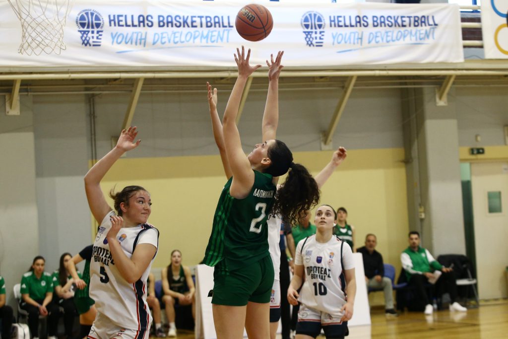 Η κατάσταση άλλαξε στη συνέχεια με τον Παναθηναϊκό να βρίσκει τις λύσεις και με 9-2 επιμέρους σκορ να πλησιάζει στον πόντο 14-13 χάρη στο τρίποντο της Μελιδονιώτη (14.10’’). Ο Πρωτέας απάντησε γρήγορα με 6-1 (20-16), αλλά και πάλι οι «πράσινες» κατάφεραν να φέρουν το ματς στα ίσια (20-20, 1.55’’) πριν από το τέλος του ημιχρόνου. Τα κορίτσια του Μάριου Δεσποτάκη απάντησαν με 5-0 για να ακολουθήσουν οι δύο βολές της Λαγωνικάκη να κλείσουν το ημίχρονο με το 25-22.